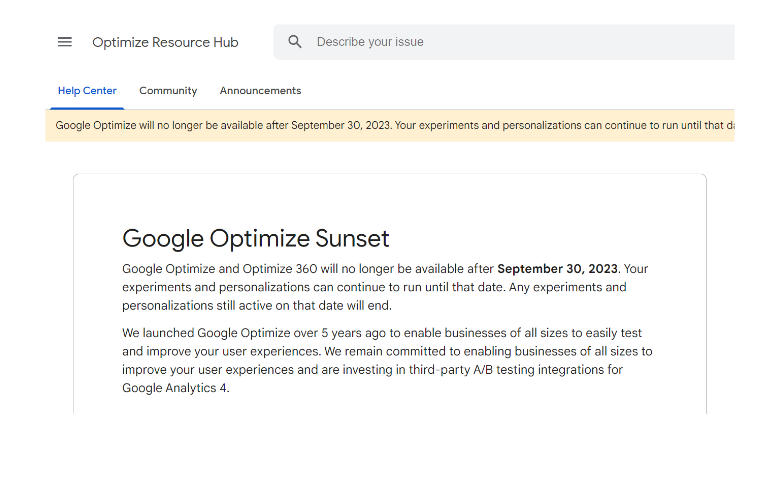 In January 2023, Google Inc. announced on its help page that Google Optimize and its paid version, Optimize 360, would end on September 30, 2023. Google Optimize was released in 2017 to improve UX. But due to the lack of sufficient features and services for testing led Google to decide to invest in a more effective solution.