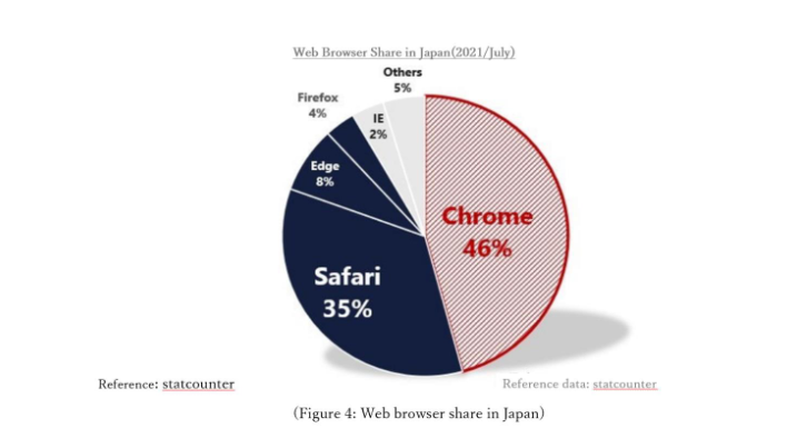 According to the announcement, the restrictions will start in late 2022, gradually eliminating Third-party Cookies in Google Chrome by late 2023. This is expected to affect ad distributions more than ever. Looking at the web browser share in Japan, Safari, Edge, and Firefox, which already have restrictions in place, account for 47% of the total. And with the restrictions being placed on Google Chrome, the use of Third-party Cookies will be restricted in more than 90% of all browsers. This basically means that Third-party Cookies will no longer be available in the majority of web browsers used in Japan.