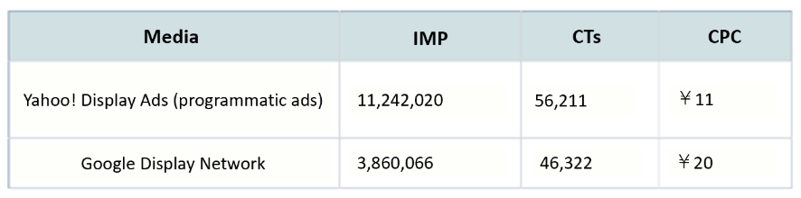 Looking only at the above, the customer thought that Yahoo! Display Ads effectively increased awareness with more inflow to the website with low CPC. They almost decided to allocate more placement share to Yahoo! Display Ads. But, Google Analytics showed the following numbers.