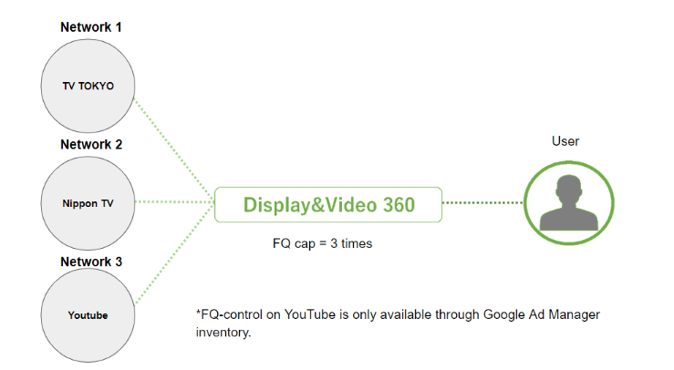 By utilizing DV 360, you can place ads on Youtube. This is a key feature, as other DSPs cannot do this. When combined with the over-the-top (OTT) ad spaces and distribution described later, you can cross-control distribution FQ, including YouTube.