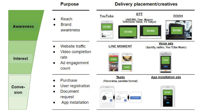 As of November 2020, DV 360 supports 17 types of rich creatives and can serve ads in formats such as 3D, Parallax, and audio. In addition, rich creatives are easy to create and can generate higher performance than Google Ads’ display ads. Creatives from awareness to acquisition are available depending on the KPI, allowing users to choose a creative that suits their purpose.