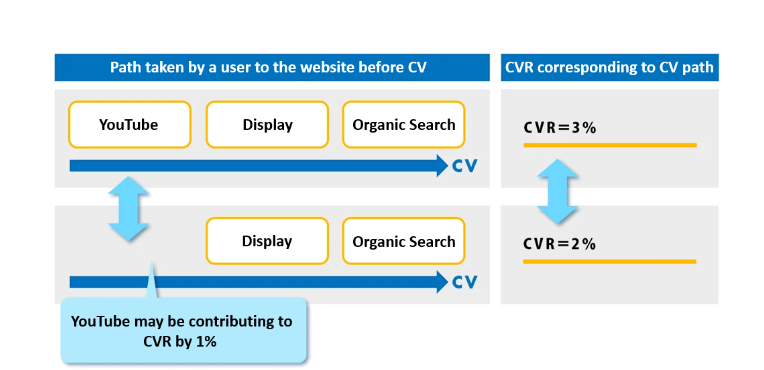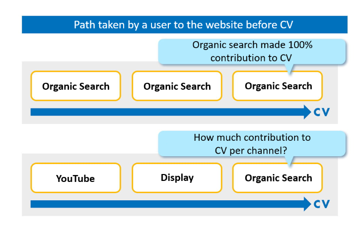 From the first contact with a website, internet users may come into contact with the website through multiple marketing channels and take actions such as purchasing products or requesting brochures. If such users took action through their first ad or their first visit to the website, evaluations can be done on that single channel. However, if the conversion was done on the website through multiple channels, it is necessary to consider how to allocate the evaluation to each channel.