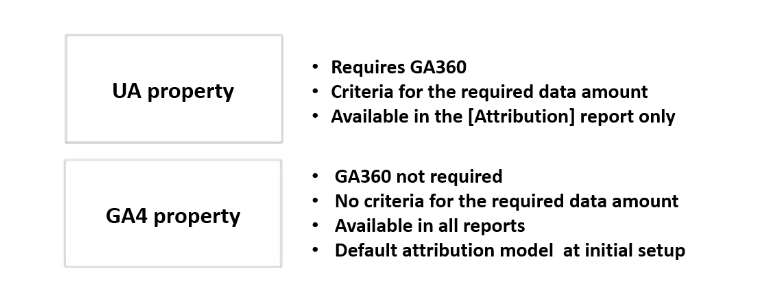With UA, you had to pay for GA360 to use DDA, and there were data volume requirements. In contrast, in GA4, these requirements were eliminated, and conversions are calculated by DDA by default. This makes it easier to evaluate conversion contribution measures in GA4 compared to UA.