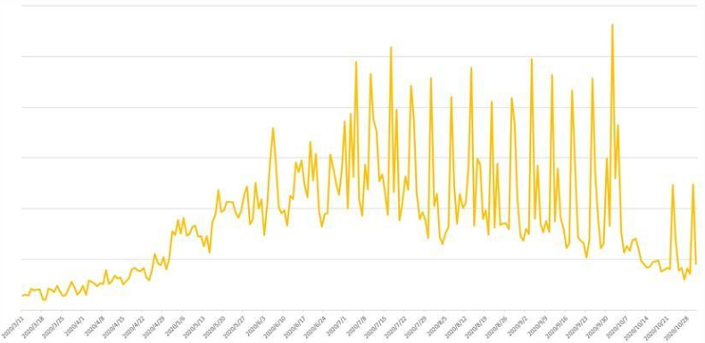 A snapshot of the increasing number of tweets with the keyword “Instagram Live.” A noticeable increase can be seen during Golden Week.