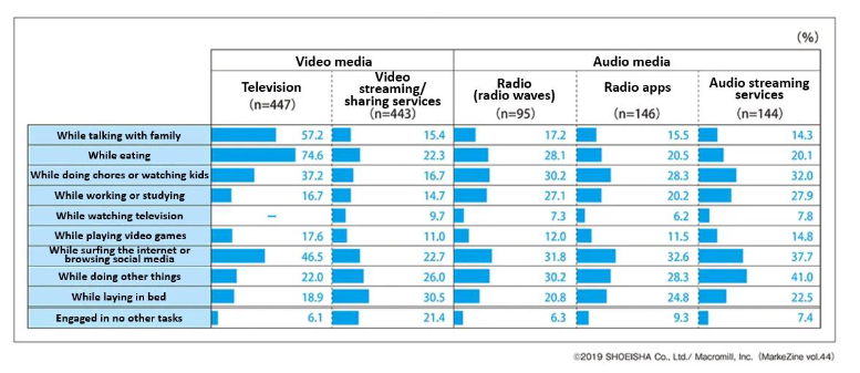 (Figure 2: Most users are engaged in other tasks while listening to audio media)