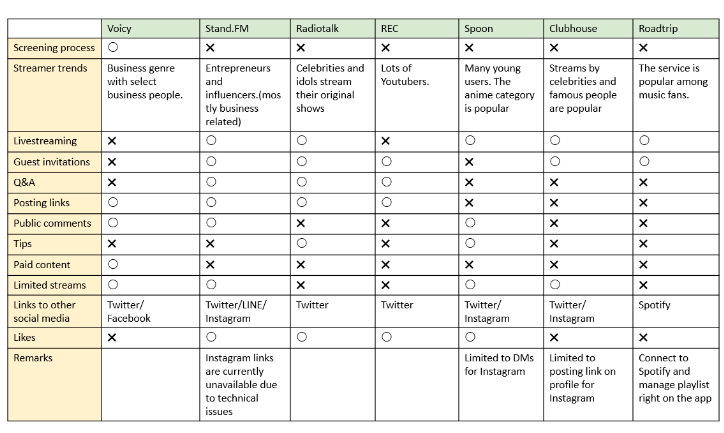 (Figure 5: Comparison of various social audio apps)