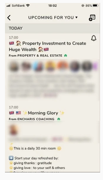 (Figure 6: The dates and times of scheduled shows are shown in the Clubhouse app)