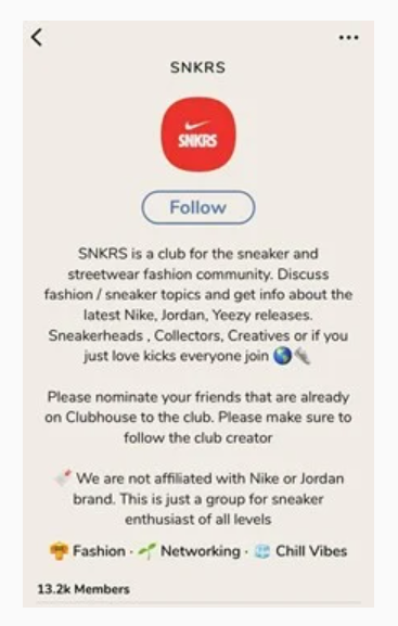 (Figure 8: The “SNKRS” community within Clubhouse)