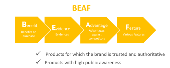 The second framework is BEAF. This is suitable for LP for products that are highly recognized by the name of the company or the product or are searched for by the name of the service. Since the users already know about the product, the first step is to present the benefits and their evidence for the purchase.