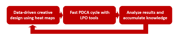 For improvements, you should run PDCA cycles through LP A/B testing and visualizing user behavior using heat-map tools. An efficient way to improve results is to “multiply accumulated TIPS with the right combination of tools”.