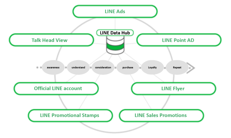 *Green words: LINE Ads, LINE Point AD, Line Flyer, LINE Sales Promotions, LINE Promotional Stamps, Official LINE account