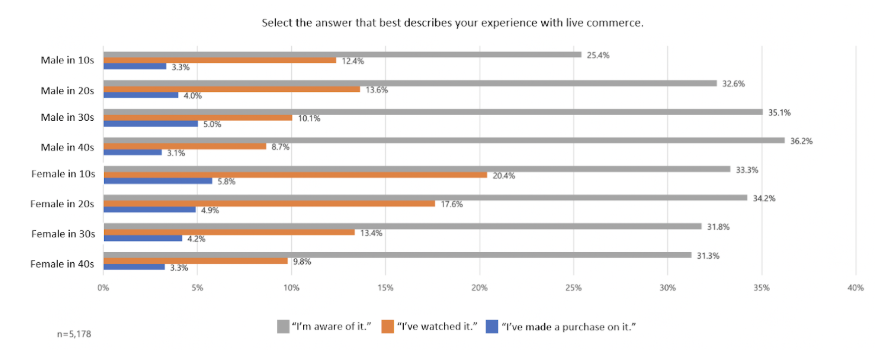 Currently, it is likely that women in their 10s to 30s will be the driving force of the live commerce market, given that word of mouth is also a factor in the viewing experience.