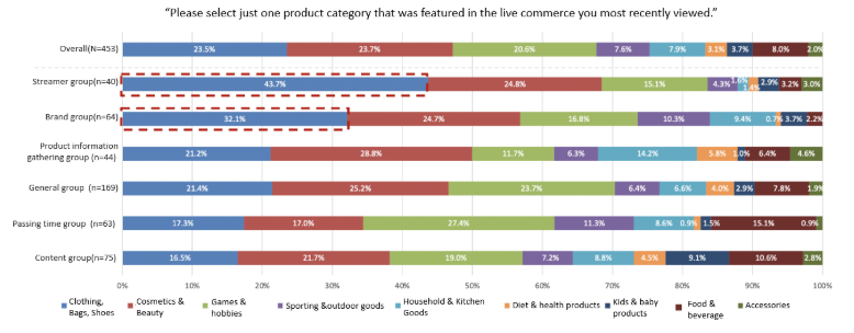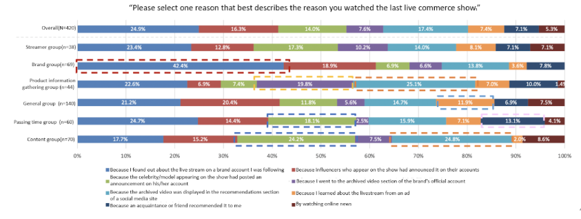 Next, we asked those who have experience viewing live commerce (n=468) about their viewing purposes (Figure 4) and classified their answers into four broad categories.