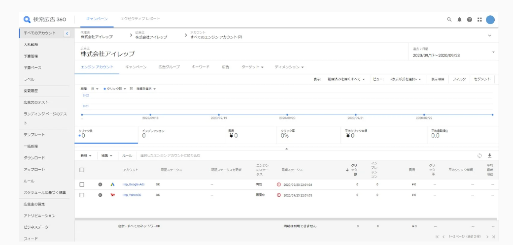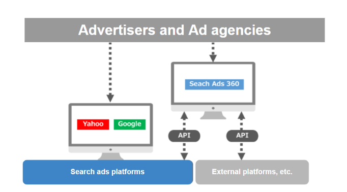 By linking APIs, you can manage search ad accounts of both Yahoo! Ads and Google Ads in one place on the SA360 management screen.