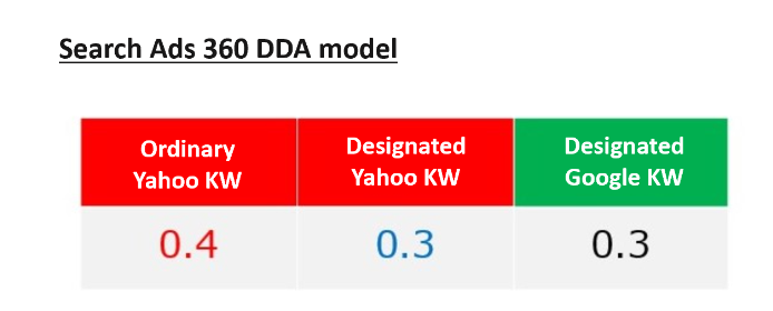 Google ads enable optimization via the DDA model, but Yahoo! ads don’t support DDA models. However, by using Search Ads 360, DDA models can be applied to Yahoo! ads as well.